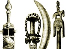 When all are assembled, the elder addresses the two family fetishes held by two of the family. Pointing and shaking his hand at them, he tells them how the deceased died, and all the family has done to settle the matter; he tells them how they have allowed the father to be taken, and prays them to protect the rest of the family; and when he has finished his address, the two who hold the fetishes, or wooden figures, pick up a little earth and throw it on the beads of the fetishes, then, lifting them up, rub their heads in the earth in front of them.