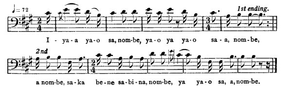 "I-ya-a ya-o sa, nom-be, ya-o ya."