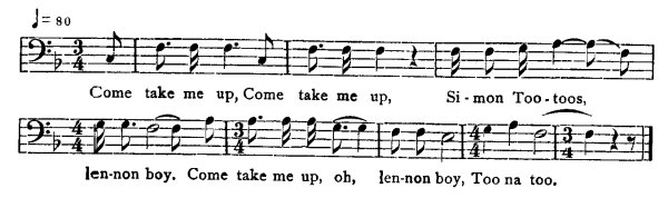 Der was once a woman dat have a child. Him name was Simon Tootoos. De mudder him was a church woman, an' him used to send de boy to church; and after, de mudder come an'