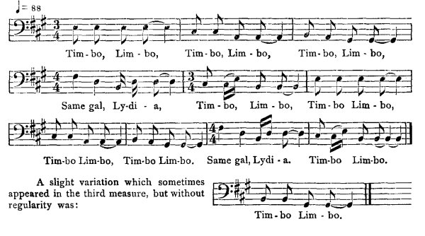 Same gal, Ly-di-a, Tim-bo, Lim-bo, Tim-bo Lim-bo,