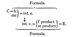 that is to say, we have outside the formula a cause, C, which produces (within the formula) a female cause; this, allied to a male cause, produces an intermediate female effect, which again being replaced by an intermediate male cause gives rise to the last two terms of the formula as a product, male and female; these two produce an effect, E, outside the formula again.