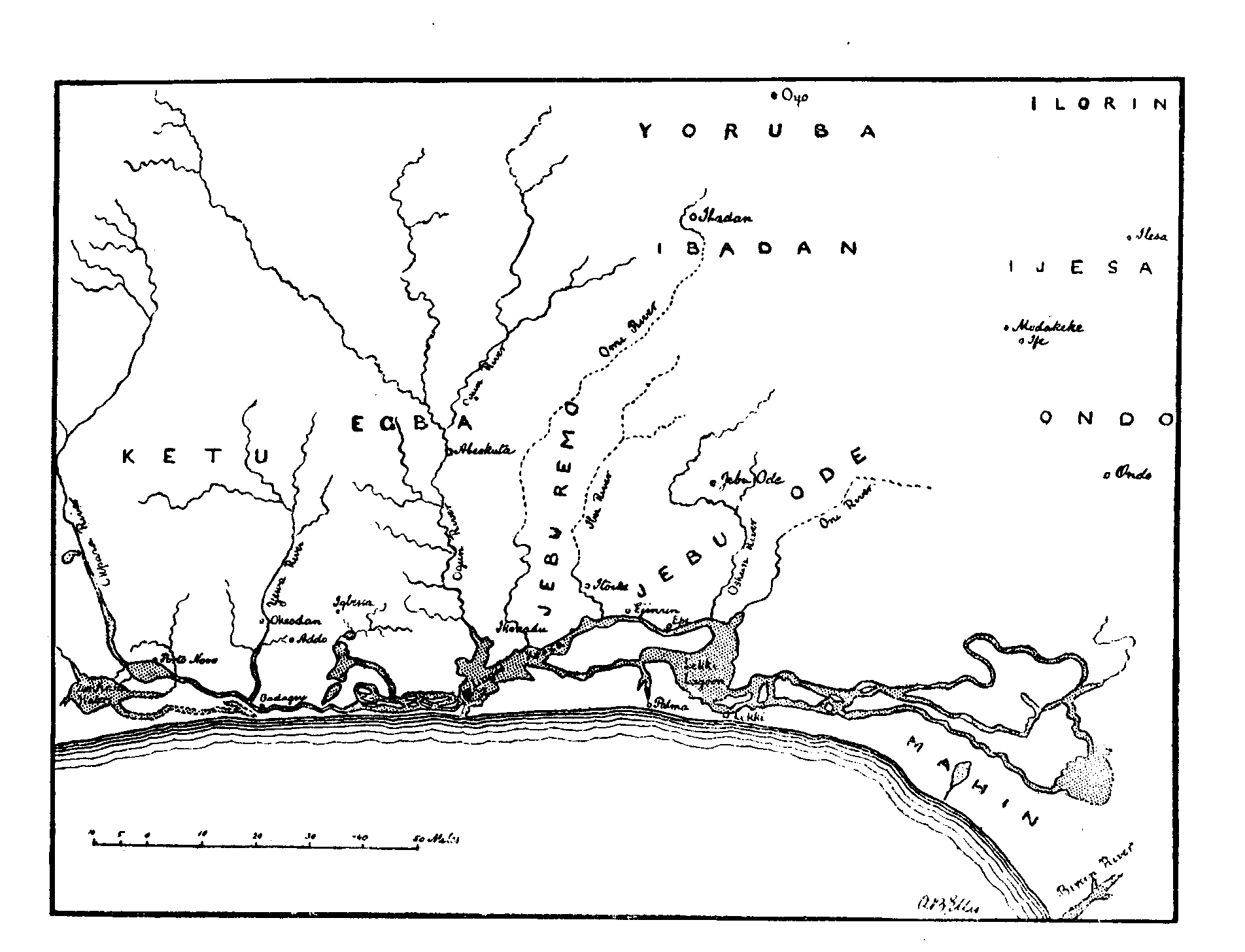 THE portion of the West African coast occupied by the Yoruba-speaking peoples is situated in the eastern half of the Slave Coast, and lies between Badagry, on the west, and the Benin River, on the east. The extent of sea-board held by them is thus smaller than that occupied either by the Tshi or by the Ewe tribes; but the Yorubas are really an inland people, and it was not until the beginning of the present century that they moved to the south and colonised Lagos and the adjacent littoral.