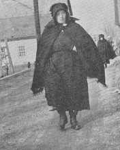 In Haste.—Amish woman on a cold day going to a public "vendue," one of their delights and a way to save money.