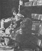 Willing Little Helpers.—Twins help mother carry a purchase of plates and some odds houle from a public sale.