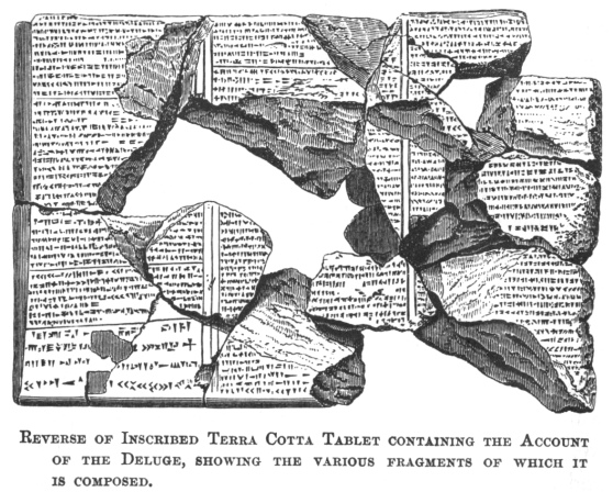 REVERSE OF INSCRIBED TERRA COTTA TABLET CONTAINING THE ACCOUNT OF THE DELUGE, SHOWING THE VARIOUS FRAGMENTS OF WHICH IT IS COMPOSED.