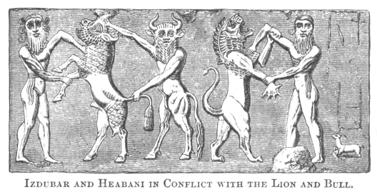 IZDUBAR AND HEABANI IN CONFLICT WITH THE LION AND BULL.