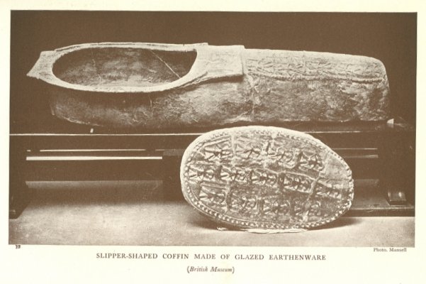 SLIPPER-SHAPED COFFIN MADE OF GLAZED EARTHENWARE