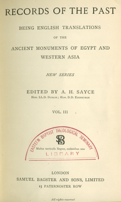Records of the Past, 2nd series, Vol. III, ed. by A. H. Sayce, [1890], at sacred-texts.com