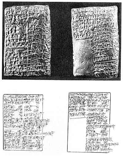 This plate illustrates a literary catalogue compiled in approximately 2000 B. C. (clay tablet 29.15.155 in the Nippur collection of the University Museum). The upper part represents the tablet itself; the lower part, the author's hand copy of the tablet. The titles of those compositions whose actual contents we can now reconstruct in large part are as follows: