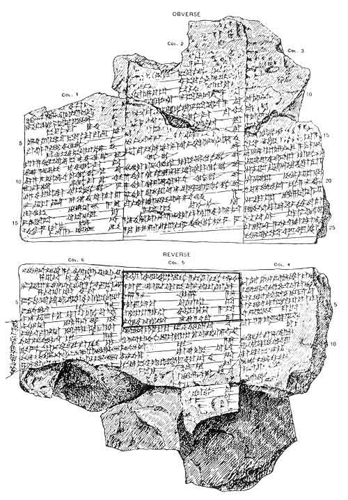 This figure gives the obverse and the reverse of the deluge tablet as published by Poebel in 1914. 88 The marked passage contains the lines describing the flood and reads as follows: