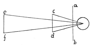 Objects of equal size, situated in various places, will be seen by different pyramids which will each be smaller in proportion as the object is farther off.