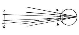 When an object opposite the eye is brought too close to it, its edges must become too confused to be distinguished; as it happens with objects close to a light, which cast a large and indistinct shadow, so is it with an eye which estimates objects opposite to it; in all cases of linear perspective,