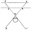 Every shadow with all its variations, which becomes larger as its distance from the object is greater, has its external lines intersecting in the middle, between the light and the object. This proposition is very evident and is confirmed by experience. For, if a b is a window without any object interposed, the luminous atmosphere to the right hand at a is seen to the left at d. And the atmosphere at the left illuminates on the right at c, and the lines intersect at the point m.