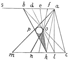 Then we may say that the line p h is darker than any other part of the space o p c h, because this line faces the whole surface in shadow of 81