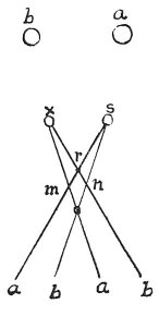 But if you uncover both the lights a b, then you get the two shadows n m both at once, and besides these, two other, simple shadows are produced at r o where neither of the two lights falls at all. The grades of depth in compound shadows are fewer in proportion as the lights falling on, and crossing them are less numerous.