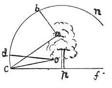 To prove it let a p be the tree, n b c the illuminated hemisphere [the sky], the under portion of the tree faces the earth p c, that is on the side o, and it faces a small part of the hemisphere at c d. But the highest part of the convexity a faces the greatest part of the hemisphere, that is b c. For this reason--and because it does not face the darkness of the earth--it is in fuller light. But if the tree has dense foliage, as the laurel, arbutus, box or holm oak, it will be different; because, although a does not face the earth, it faces the dark [green] of the leaves cut up by many shadows, and this darkness is reflected onto the under sides of the leaves immediately above. Thus these trees have their darkest shadows nearest to the middle of the tree.
