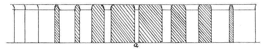 columns are by degrees entirely lost. So, if your method of perspective is good, it will produce the same effect; this effect results from standing near the line in which the columns are placed. This method is not satisfactory unless the objects seen are viewed from a small hole, in the middle of which is your point of sight; but if you proceed thus your work will be perfect and will deceive the beholder, who will see the columns as they are here figured.