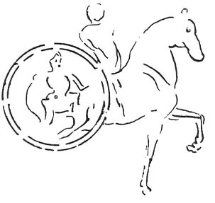 On the left side will be a wheel, the centre of which should be attached to the centre of the horse's hinder thigh piece, and in the centre Prudence is seen robed in red, Charity sitting in a
