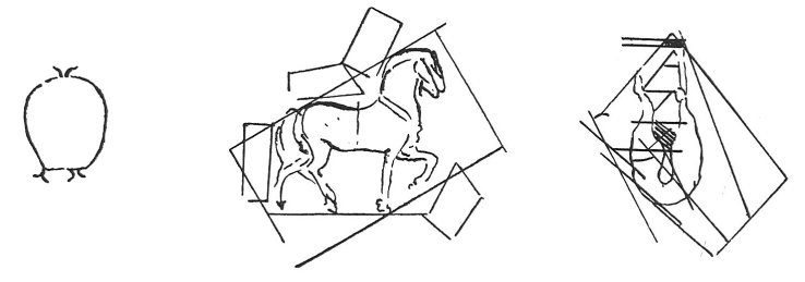 11:335 : The importance of the notes included under this number is not diminished by the fact that they have been lightly crossed out with red chalk. Possibly they were the first scheme for some fuller observations which no longer exist; or perhaps they were crossed out when Leonardo found himself obliged to give up the idea of casting the equestrian statue. In the original the first two sketches are above l. 1, and the third below l. 9.