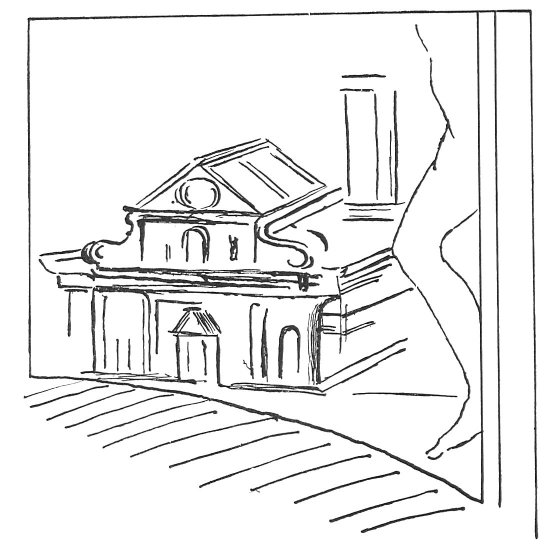 In the background of Leonardo's unfinished picture of St. Jerome (Vatican Gallery) a somewhat similar church front is indicated (see the accompanying sketch).