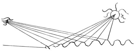 The sun will appear larger in moving water or on waves than in still water; an example is the light reflected on the strings of a monochord.