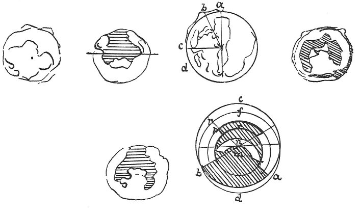 The great elevations of the peaks of the mountains above the sphere of the water may have resulted from this that: a very large portion of the earth which was filled with water that is to say the vast cavern inside the earth may have fallen in a vast part of its vault towards the centre of the earth, being pierced by means of the course of the springs which continually wear away the place where they pass.