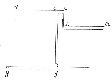 c d is the garden at Blois; a b is the conduit of Blois, made in France by Fra Giocondo, b c is what is wanting in the height of that conduit, c d is the height of the garden at Blois, e f is the siphon of the conduit, b c, e f, f g is where the siphon discharges into the river. 589