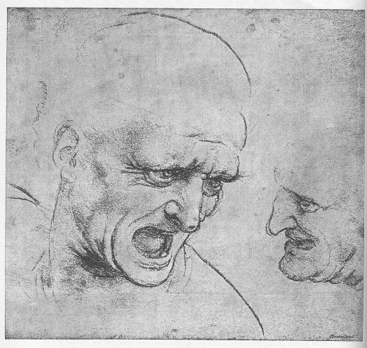 Leonardo's two drawings, preserved in the museum at Buda-Pesth and reproduced on pages 338 and 339 are preliminary studies for the heads of fighting warriors. The two heads drawn in black chalk (pg. 338) and the one seen in profile, turned to the left, drawn in red chalk (pg. 339), correspond exactly with those of two horsemen in the scene of the fight round the standard as we see them in Madame Timbal's picture and in the other finished copies. An old copy of the last named drawing by a pupil of Leonardo is in MS. C. A. 187b; 561b (See Saggio, Tav. XXII). Leonardo used to make such finished studies of heads as those, drawn on detached sheets, before beginning his pictures from his drawings--compare the preparatory studies for the fresco of the Last Supper, given on Pl. XLVII and Pl. L. Other drawings of heads, all characterised by the expression of vehement excitement that is appropriate to men fighting, are to be seen at Windsor (No. 44) and at the Accademia at Venice (IV, 13); at the back of one of the drawings at Buda-Pesth there is the bust of a warrior carrying a spear on his left shoulder, holding up the left arm (See Csatakepek a XVI--lk Szazadbol osszeallitotta Pvlszky Karoly). These drawings may have been made for other portions of the cartoon, of which no copies exist, and thus we are unable to identify these preparatory drawings. Finally I may add that a sketch of fighting horse and foot soldiers, formerly in the possession of M. Thiers and published by Charles Blanc in his "Vies des Peintres" can hardly be accepted as genuine. It is not to be found, as I am informed, among the late President's property, and no one appears to know where it now is.