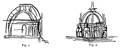 Three slight sketches of sections on the same leaf--above those reproduced here--are more closely connected with the large drawing in the centre of Pl. C, No. 4 (M.S, Tr. 41) which shows a section of a very elevated dome, with double vaults, connected by ribs and buttresses ingeniously disposed, so as to bring the weight of the lantern to bear on the base of the dome.