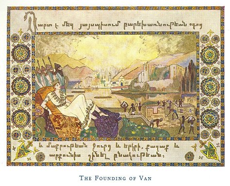 AND after these things Semiramis, having remained in the plain called Aïrarat after Ara, went into the hill country towards the south. For it was summer time and she wished to disport herself in the valleys and the flowery plains. And seeing the beauty of the land and the purity of the air, the clearness of the fountains and the murmuring of the gliding rivers, she said, "It is needful that we build for ourselves a city and palaces in this balmy clime and beautiful country, by the side of these pure waters; so that we may spend the fourth part of the year, which is the summer season, with enjoyment in the land of Armenia; and the three cool seasons of the year we will spend in Nineveh."