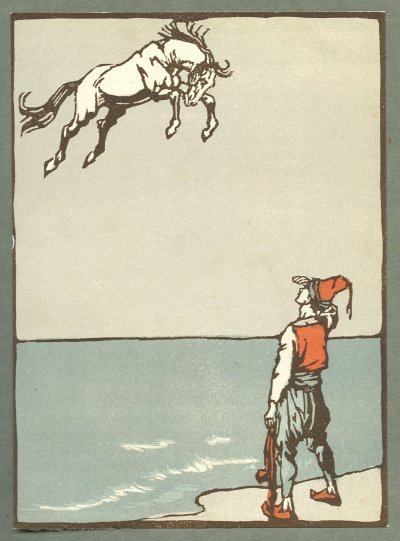 plumage, caressed it, and p-r-rr! it suddenly flew away. If the magic horse had not quickly flown after it, caught it, and wrung its neck, the Prince would never have met his ladylove again.