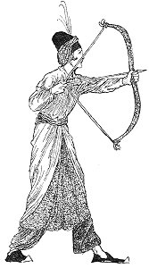 Morning broke and found him near the spot where his arrow had fallen. All three arrows were eventually recovered, and as it was seen that the youngest brother had shot the farthest he was set upon the throne with suitable pomp and ceremony.