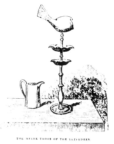 There can be little doubt, but that the Melek Taoos is in substance the ferouher of Zoroastrianism; and I think it very probable, that this Image in used for purposes of divination in the secret assemblies of the modern Yezeedees. The worship of a bird appears to have been a most ancient species of idolatry; it in condemned expressly in Dent. iv. 16, 17: "Lest ye corrupt yourselves and make you a graven image, the similitude of any figure the likeness Of any fowl that flieth in the air."