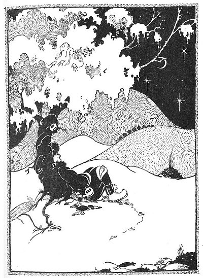 Just at this time, in a small village far below at the foot of the mountain, a little girl was born. In the tree under which the man was lying asleep dwelt a goddess. All around him in the wood dwelt a number of goddesses, and it was their duty to cast lots and foretell this new little lady's future: who her husband would be, when she was to be married, if she would live to be old, and the day of her death. The goddess who lived in the tree under which Drashup was sleeping invited all the others to come to her tree, as she had a guest asleep near her dwelling. So they came and began to forecast the lady's future:--She would