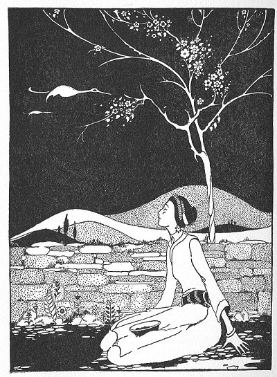 One day a big crane coming from near the sea was carrying a few heads of rice for his own food; as he flew over the palace, he dropped a few of the grains, which the servants gathered up and took to the mistress of the house. She said to them, "We must plant a few of these seeds and be careful with them, for they make fine medicine for fevers."
