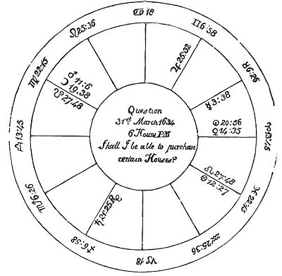The inheritance of the house wherein at this present 1647 I live, and some others, being proffered me to buy in 1634, had a desire to know if I should deal with the seller, and procure money in convenient time to pay for the purchase, my own money being in such hands that I could not call it in under six months' notice. Being desirous, I say, to purchase the said houses, and fully resolved upon it, I took my own question myself, at the time I found my mind most perplexed and solicitous about it. The time of the query to myself fell out according to the position of heaven following.