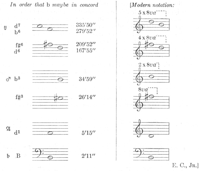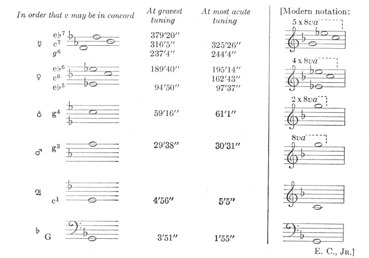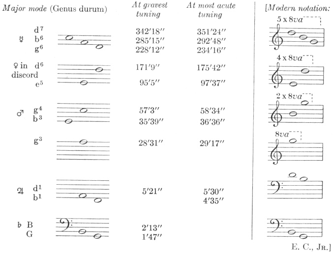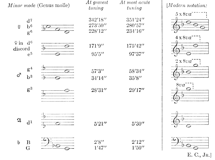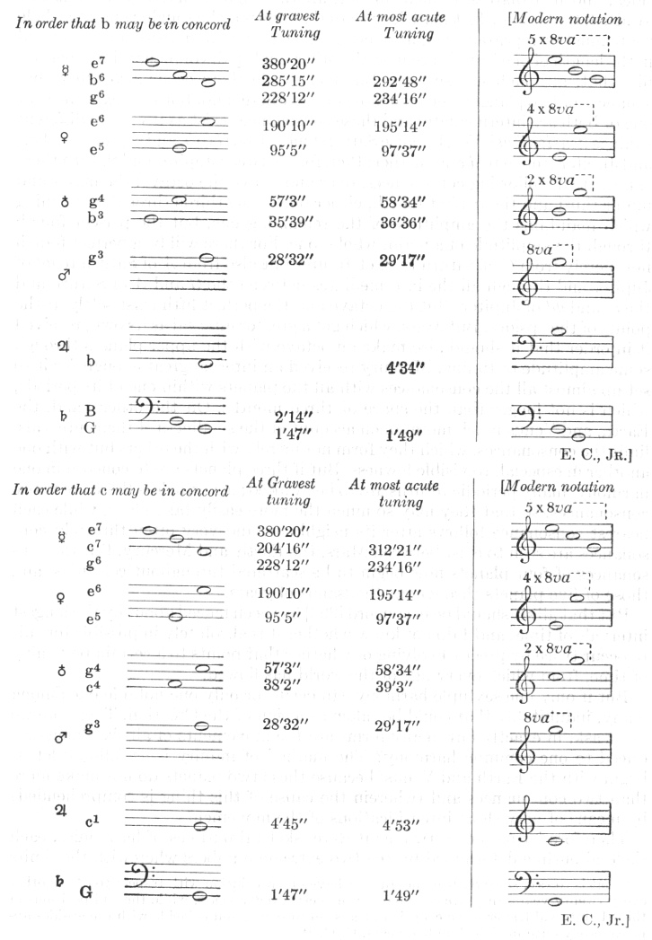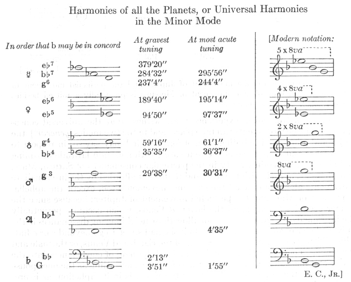 Here again, in the mean tuning Saturn joins in with its perihelial movement, Jupiter with its aphelial, Mercury with its perihelial. But at highest tuning approximately the perihelial movement of the Earth joins in.