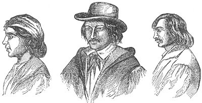 Neither is the common opinion correct which asserts all the American Indians to be of the same type of features. The portraits on this page and on pages 187 and 191, taken from the "Report of the U. S. Survey for a Route for a Pacific Railroad," present features very much like those of Europeans; in fact, every face here could be precisely matched among the inhabitants of the southern part of the old continent.