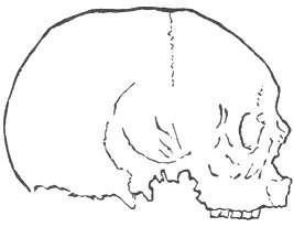 The indications are that the Bronze Age represents the coming in of a new people--a civilized people. With that era, it is believed, appears in Europe for the first time the domesticated animals-the horse, the ox, the sheep, the goat, and the hog. (Morlot, "Smithsonian Rep.," 1860, p. 311.) It was a small race, with very small hands; this is shown in the size of the sword-hilts: they are not large enough to be used by the present races of Europe. They were a race with long skulls, as contradistinguished. from the round heads of the Stone Period. The drawings on the following page represent the types of the two races.