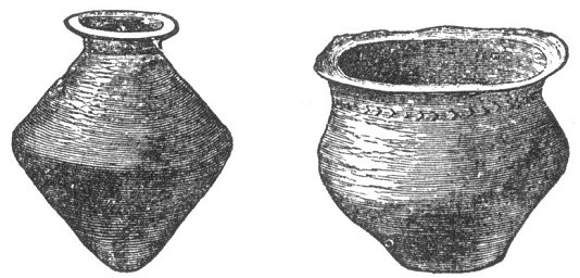 We find a great resemblance between the pottery of the Bronze Age in Europe and the pottery of the ancient inhabitants of America. The two figures on page 260 represent vases from one of the mounds of the Mississippi Valley. Compare them with the following from the lake dwellings of Switzerland: