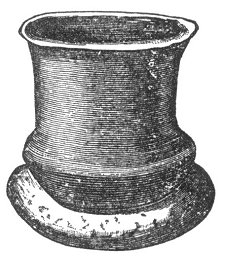 It will be seen that these vases could scarcely stand upright unsupported; and we find that the ancient inhabitants of Switzerland had circles or rings of baked earth in which they placed them when in use, as in the annexed figure. The Mound Builders used the same contrivance.
