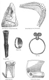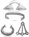 I give some illustrations on pages 239 and 242 of ornaments and implements of the Bronze Age, which may serve to throw light upon the habits of the ancient people. It will be seen that they had reached a considerable degree of civilization; that they raised crops of grain, and cut them with sickles; that their women ornamented themselves with bracelets, armlets, earrings, finger-rings, hair-pins, and amulets; that their mechanics used hammers, adzes, and chisels; and that they possessed very fair specimens of pottery. Sir John Lubbock argues ("Prehistoric Times," pp. 14, 16, etc.):