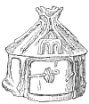 We find among the relies of the Bronze Age an urn, which probably gives us some idea of the houses of the Atlanteans: it is evidently made to represent a house, and shows us even the rude fashion in which they fastened their doors. The Mandan Indiana built round houses very much of this appearance.