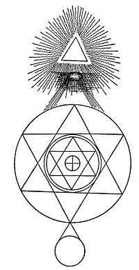 The twelve divisions, formed by the crossing of the two triangles, are the gates to Heaven where dwells the Heavenly Father. These gates symbolize virtues, the twelve great earthly virtues, which man must possess before he can enter the gates, among them being Love, Hope, Charity, Chastity, Faith, et cetera. Love stands at the head of the list.