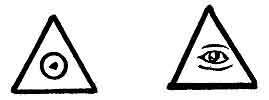 An equilateral triangle with an eye within symbolizes the Deity looking out from heaven. In Egypt it was changed to the all seeing Eye of Osiris looking down from heaven. These two symbols are found in all ancient writings. Rather, they appear in many writings and among all people.