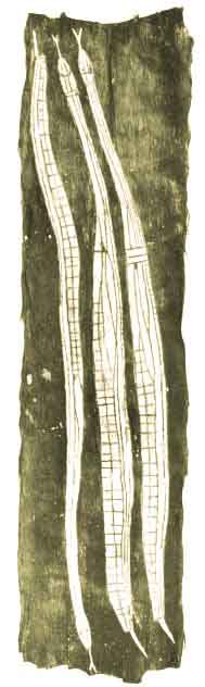 Bark Drawing: Three Snakes, (Kakadu Tribe)