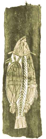 Bark Drawing: Barramunda Fish, (Kakadu Tribe)