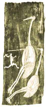 Bark Drawing: Native Spearing 'Native Companion', (Kakadu Tribe)