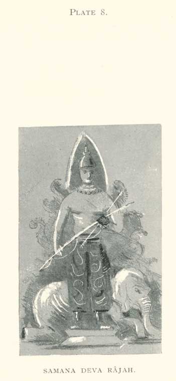 Samana Deva Râjah, as his name implies, is Deva or Siva, and the Kappooism, or devil-dancing in Ceylon, is pretty well known. The amount of devils to be conciliated is large, if according to Mr. Moncure Conway, eighty-four thousand charms are required for the purpose. It is urged that this sorcery is a reminiscence of the Naga worship that prevailed