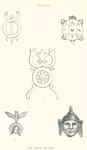 Fig. 1 Plate 17 is Siva's Trisula. Outside of India it is called the Rod of Hermes. It is the holiest symbol of Buddhism, Mani, the Pearl.